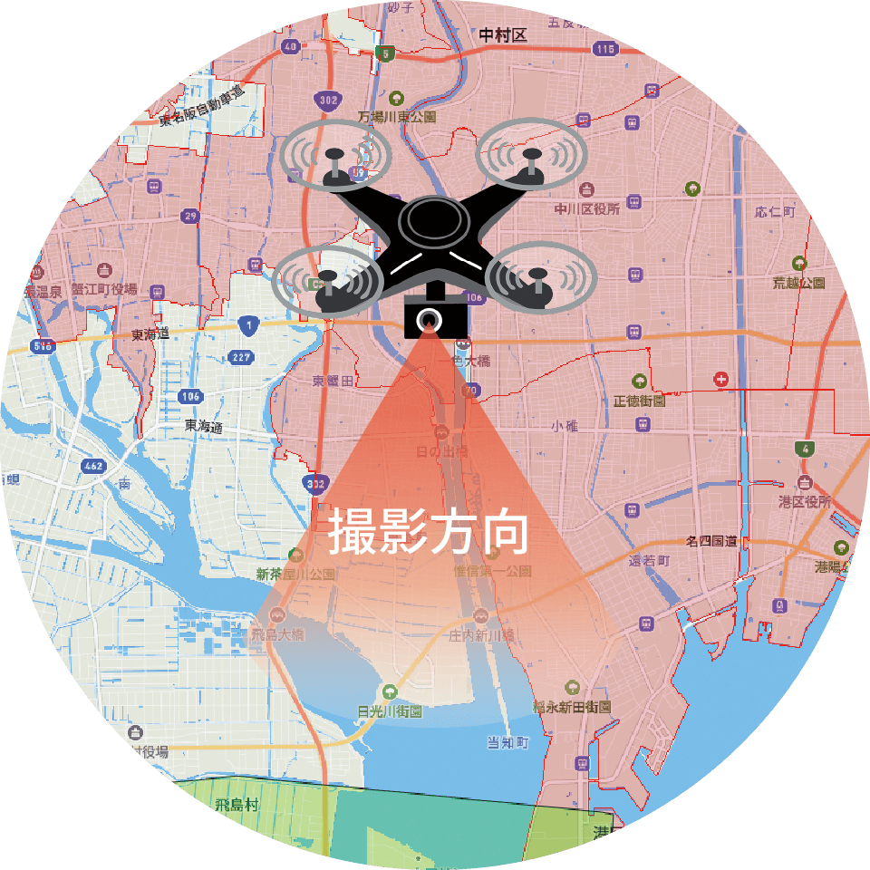 - 人口密集地でも安全に飛行しながら撮影可能の場合があります。 (条件のご相談後に、飛行可能かどうかをお調べします。)